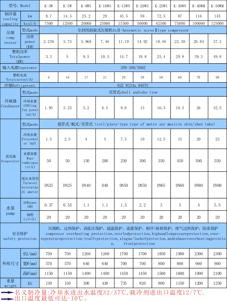 水冷式冷水機組參數