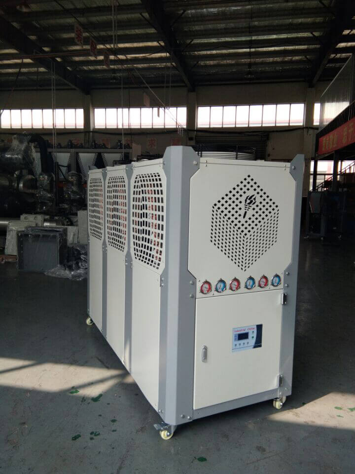 2.風冷式工業式制冷機組是以空氣作為冷凝方式的制冷機組,風冷式工業式制冷機組為箱式一體化設計,不用配冷卻水塔,方便安裝和維護,輸出馬力從3HP~200HP;