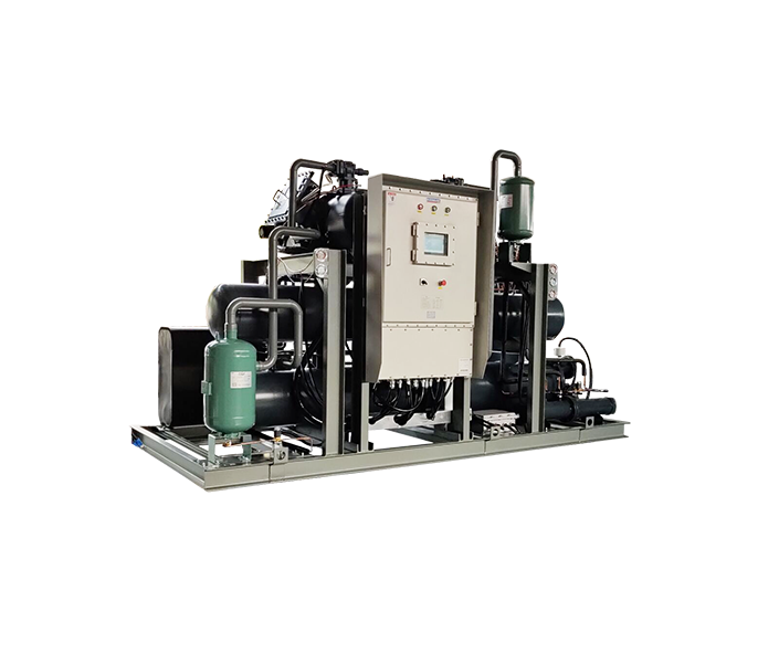 水冷螺桿復(fù)疊式制冷機(jī)組有防爆型、冷熱兩用型。